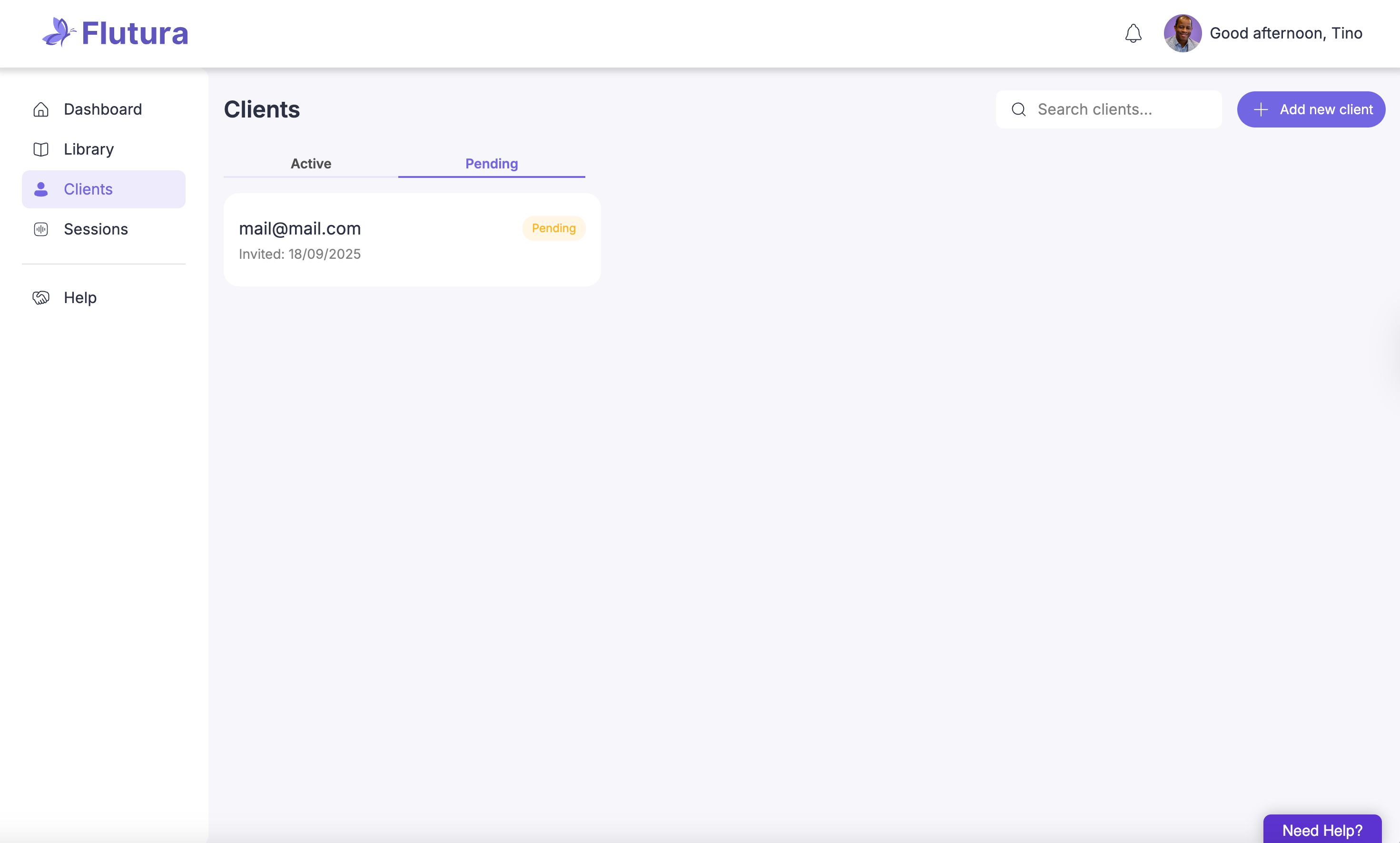 Click Save. Flutura will send the client an email invitation to set up their account.