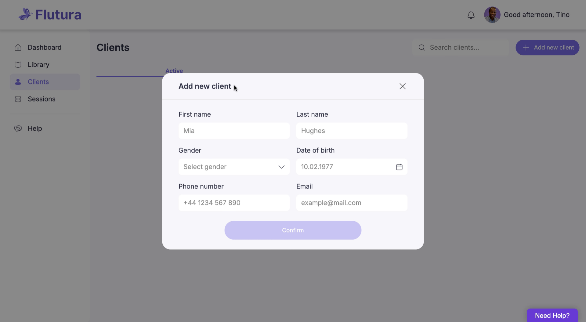 Accidentally entered details wrong? Open the client profile, click Edit, and update their information.